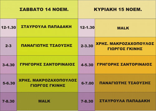 Στο περίπτερο μας θα υπογράψουν έργα τους οι: Σταυρούλα Παπαδάκη, Παναγιώτης Τσαούσης, Γρηγόρης Σαντοριναίος, Χρήστος Μακροζαχόπουλος, Γιώργος Γκίνης και Malk.