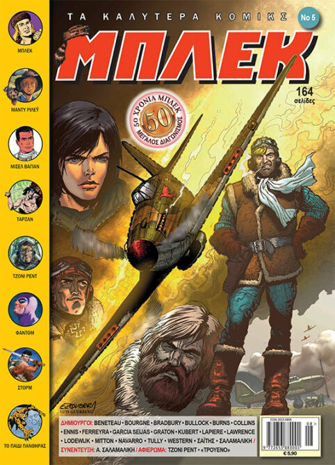 Συνεπείς και σε αυτό το τεύχος με τον θεσμό του guest star, αυτή τη φορά «κλέψαμε» έναν αγαπημένο χαρακτήρα από το αντίπαλο δέος του Μπλεκ (τις περασμένες δεκαετίες), το γνωστό σε όλους «Αγόρι». Πρόκειται για τον αγαπημένο Τζόνι Ρεντ, το δημοφιλή πιλότο της RAF, ο οποίος, πιλοτάροντας με ένα κλεμμένο Hurricane, γίνεται μέλος μιας εγκαταλελειμμένης μοίρας Falcon… και εκεί αρχίζουν όλα! Στις σελίδες του περιοδικού μας, θα έχετε την ευκαιρία να διαβάσετε τη νέα σειρά που κυκλοφόρησε από την Titan το 2015 και ολοκληρώθηκε σε 8 τεύχη, σε σενάριο Garth Ennis και σχέδιο Keith Burns! Το τεύχος #5 είναι όμως και για έναν ακόμη λόγο ξεχωριστό! Σηματοδοτεί τα 50 χρόνια κυκλοφορίας του αγαπημένου μας περιοδικού! Ναι, πολύ σωστά καταλάβατε, πέρασαν 50 χρόνια από τις 25 Ιουνίου 1969, όταν ο Στέλιος Ανεμοδουράς εξέδωσε για πρώτη φορά τον Ξανθό Γίγα! Για το λόγο αυτό, ένας μεγάλος διαγωνισμός ανακοινώνεται, ενώ, στο editorial αποκαλύπτεται και άλλη μια εκπληξη που σας επιφυλάσσουμε έως το τέλος του έτους! Για να δούμε όμως αναλυτικότερα τι περιλαμβάνει το Μπλεκ #5: