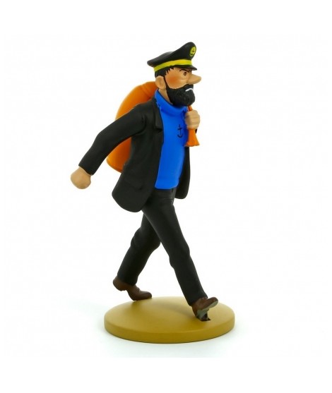 This hand-painted figure corresponds to panel A3 (page 52) of the album The Seven Crystal Balls, when Captain Haddock, sack in hand, decides to go in search of Professor Calculus at the port of Saint-Nazaire. Height: 12 cm.